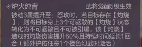 炉火纯青:强化三星技能,转化更多的灼烧为不可驱散,但是也不可引爆。