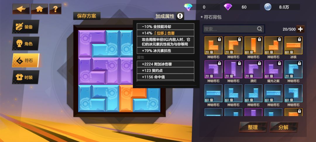 符石优先冰伤,带点移速跑图快,带点契约符石装满2,4技能