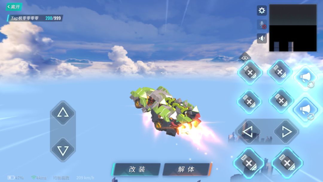 飞天模式(把前面四喷朝下)的话速度较慢,而且因为在空中,操作比较困难