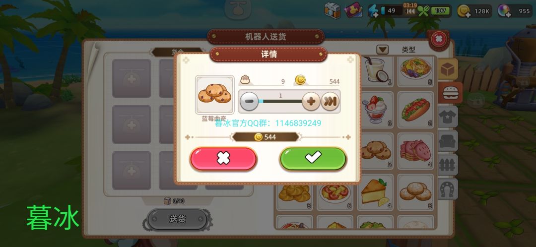 ★【等级】:解锁等级,成本:制作配方物品出售价格和农作物、水果熟练度最高出售价格总和,比如:蓝莓出售价(219~229)*2 +面粉出售价112*2 +鸡蛋10*2=702(水果只算最高价)>出售价544(如↓图)