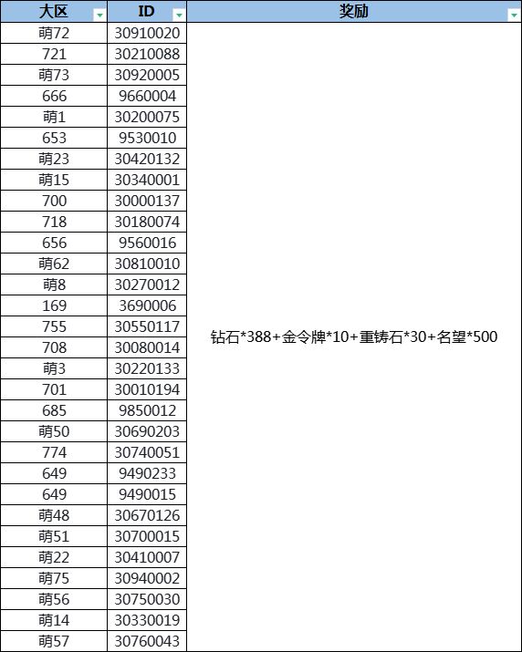 (钻石*388+金令牌*10+重铸石*30+名望*500)*30份。
