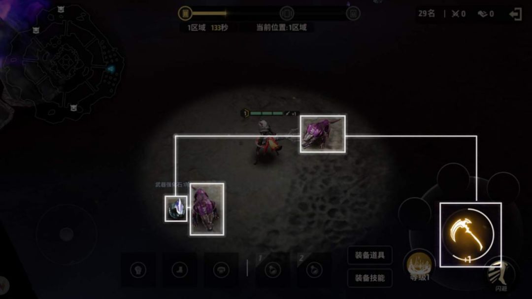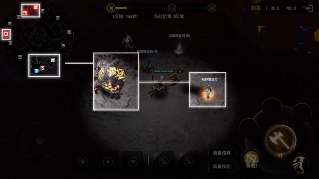 2.获取实用道具。(1)视野增加灯。在荣光之战中,幸存者的视野是有限的,这可能会导致与宝物错失交避,或者是被埋伏的敌人消灭!在地图中会刷新名为[视野怪物]的特殊怪物,消灭它就会掉落视野增加灯,拾取视野增加灯,可见视野范围将得到提升!