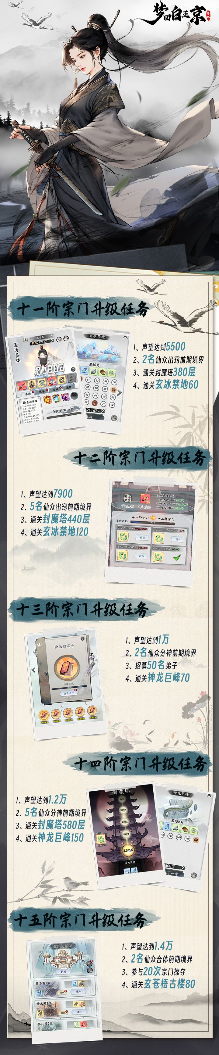 《梦回白玉京》修仙前瞻—宗门升级任务表11-15阶