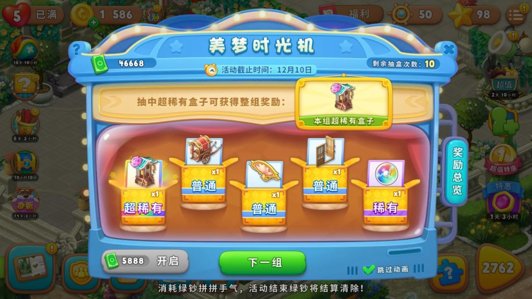 集齐绿钞皮肤后,就可以进入激动人心的“美梦时光机”盲盒抽取环节了