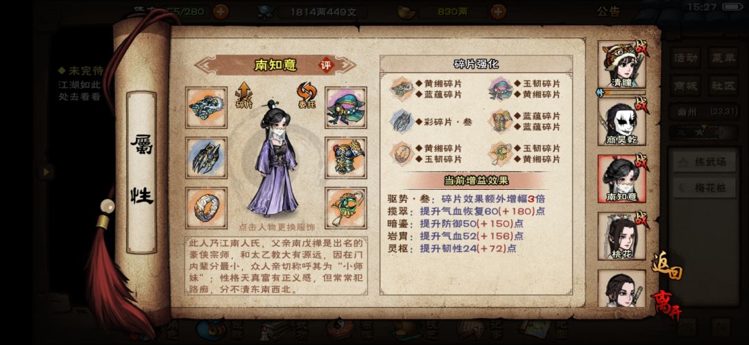 天一(自引):不推荐,用它来卡血,不如直接用琉璃,盾是防不了debuff的流血,我曾经测试过用自引打碧游,体验不是很好,老祖宗的buff流血,挂上后开盾卡50%的盾量会被流死,卡40%的吨量不如琉璃,个人感觉不是很稳定