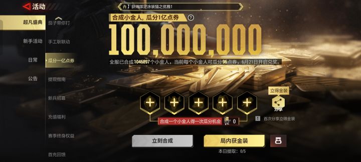 金色小金人配件会越来越便宜,但是获得的点券价格也是会越来越少。就怕到达兑换日期还剩下几点卷了,那就欲哭无泪。我的配件都让我提前卖了,不合成。