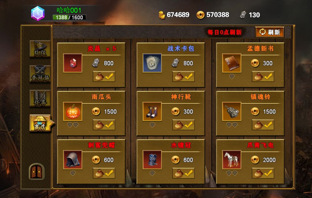 1:重做了PVP商店,系统每天会刷出9个商品,玩家可以消耗兵符或者魂玉兑换