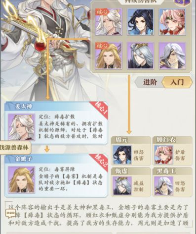 这一套以周元为核心的破甲队搭配不仅适合追求大数字的高手,也适合刚玩几天刚上手的新手进行操作,整个队伍就主要培养周元,其次是圣周和武瑶,全队围绕着周元服务,周元高额的破甲在前期的PVE和PK中都极其实用,这个阵容在前期算是新手平民玩起来最舒服的阵营之一。