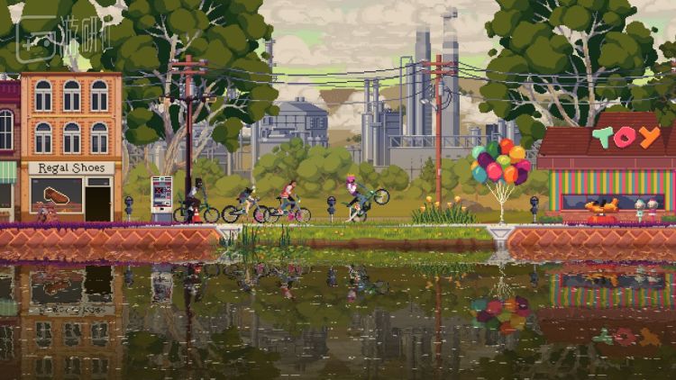 和之前的《王国》系列作品一样,玩家在《王国:80年代》中的“坐骑”或者说“载具”并不限于最开始的自行车,通过扩展疆域解锁地图,玩家还能获得新的现代化载具,比如测试版中就可以用滑板来替代自行车。两种载具不光是外观不同,操作的手感也不太一样,自行车操作简单,连点方向键就可以快速移动,但是耐力较差,骑一会就要停下来喝口水,而滑板则需要多次连点按键才能慢慢把速度提起来,不过一旦提起速度,就可以借力滑行很长一段时间。虽然实用性上两者并没有显著差距,操作手感的差异却让人觉得自己真的是在骑车/滑滑板。