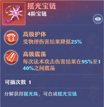 顺带一提,随机宝链存在保底机制,如果道友们连续20次没得到摇光宝链,那第21次必出;同时出的摇光宝链技能数也存在保底,如果连续9次拿到1技能摇光,那第十次必定是2技能,所以脸再黑也不用怕,换下去就一定会有。