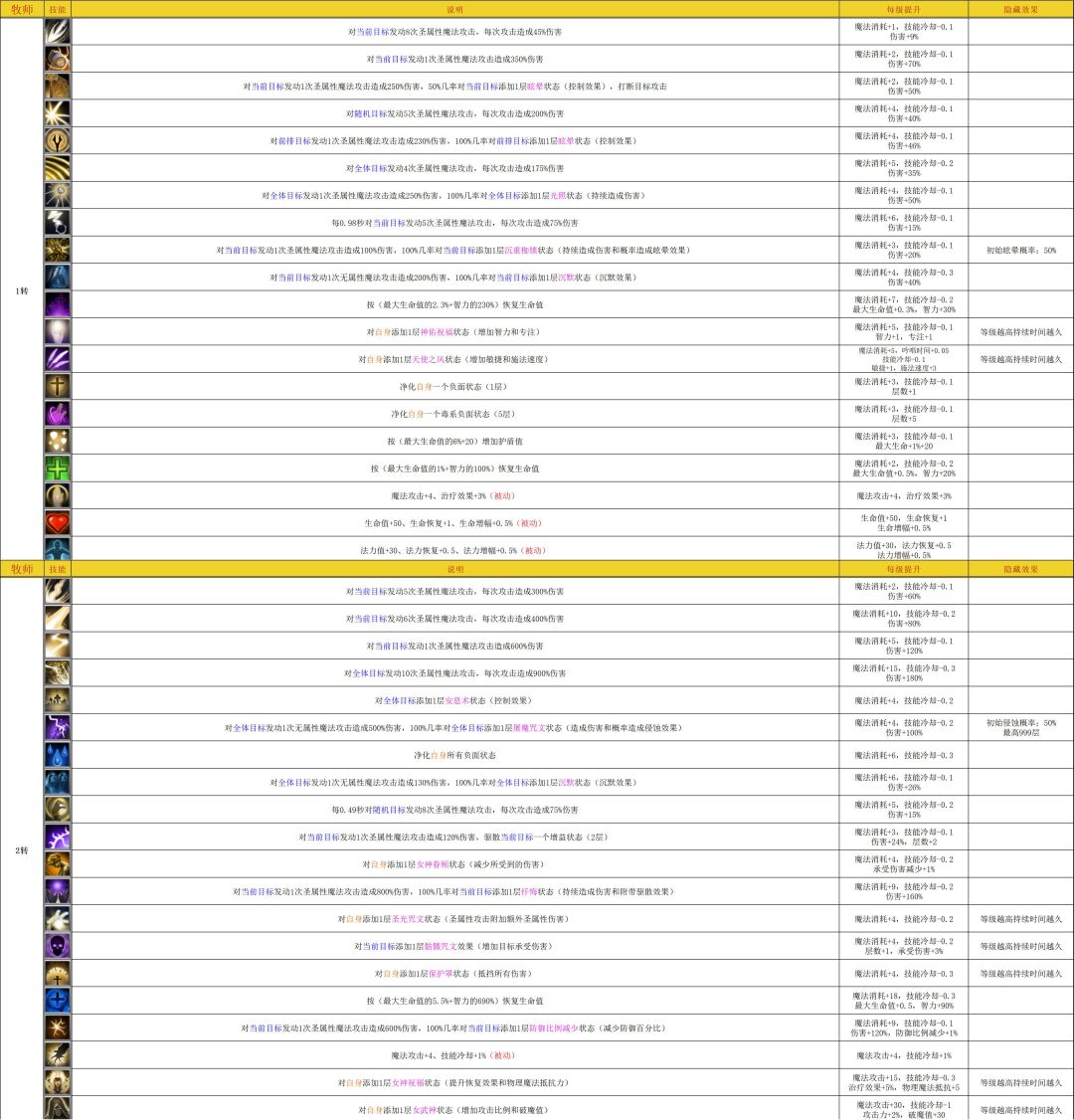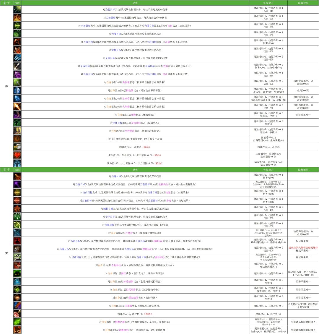 全职业技能效果展示(含成长参数和隐藏效果)