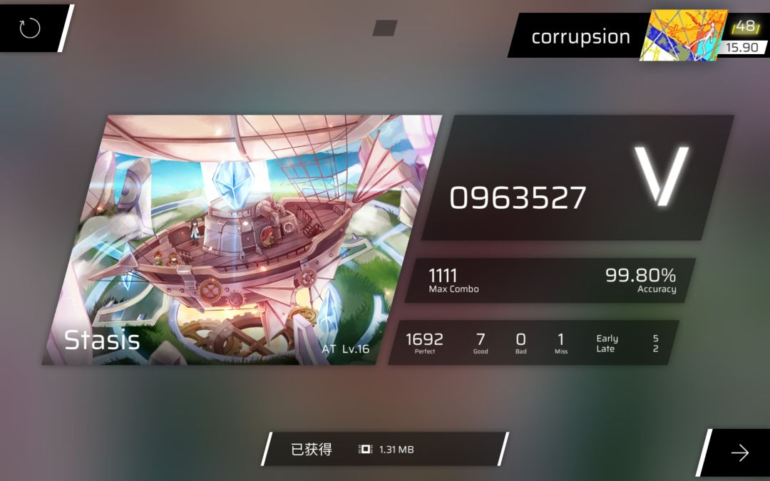 船很可惜,差一点就全连,没想到是在5k前的大位移交互那里漏的(图二),应该是点歪了,在此之前都是全金,5k段也是全连,没想到5k力有这么大进步;