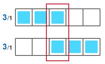 其实,要有重叠,那么蓝块的数量必须大于这一行所有格子数的一半,这样才会出现重叠。