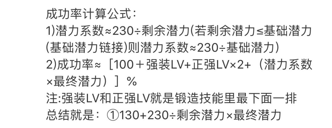 可以看到前面的公式剩余潜力增加了1潜,成功率也更高了,模拟的是72潜的情况,71潜力公式同上,70潜开始不能用,69-70用下面的公式!