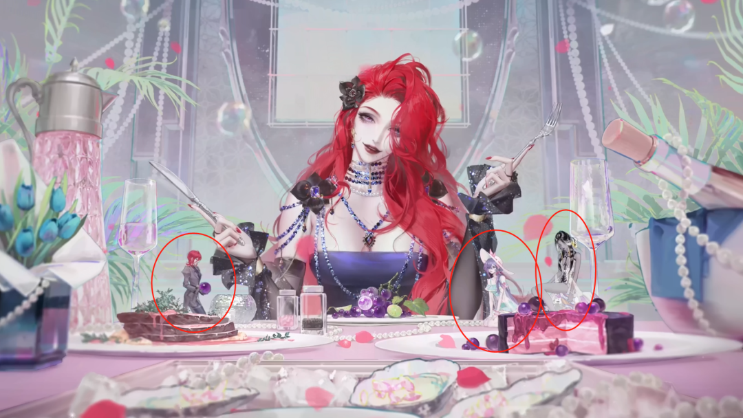 此外从PV音乐中我们也能听出一些欢快的气氛音,而且外加此次的故事是发生在一个公馆中,相当于开了个大型的泳池party吧,所以这个故事大概的走向应该是一个大家在一个地方开party,然后卡门奈特(新狂大姐)用了某些异化能力让大家产生了无尽的虚幻欲望,导致无数参与此次party的人们都陷入了追逐虚妄的怪圈当中,而我们的局长,咳咳,则当然会带上赫卡蒂和海拉等保镖,经过了万千阻难最终阻止了灾难的发生,然后最后顺道还要撩一把/或者被撩一把卡门奈特,然后......再顺道给她上了个枷锁。