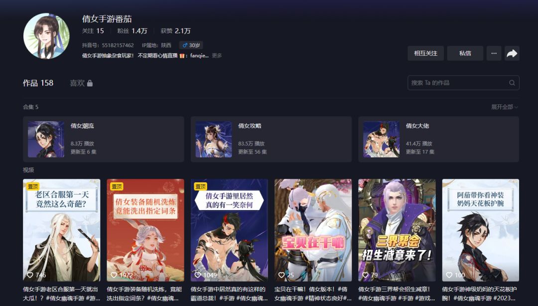 虽然报名会结束,但是【倩影风华广告位】将持续进行中。今日菌菌就发现了一位致力在抖音打造倩女“最全攻略”的职业玩家,甚至在七周年线下见面会“围堵策划三小时”!