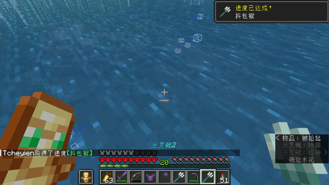终于爆了(距离第一把三叉戟,中间我至少杀了40只三叉戟溺尸,真的是快吐了,这抢夺三太恶心了)