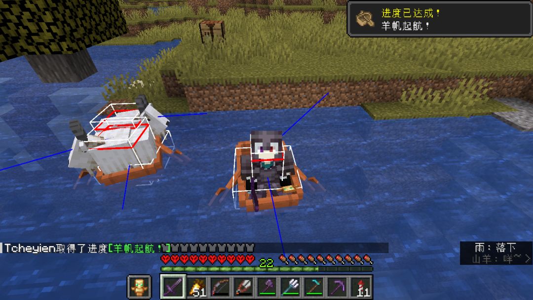 挖樱花木回出生点的途中,抓了几只山羊去打溺尸