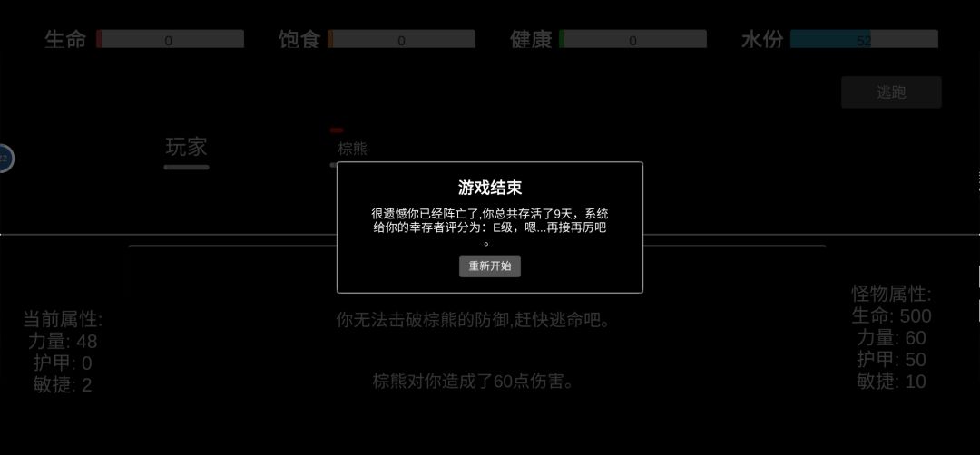 反馈一点点小问题,比如被动物一巴掌拍死,矿泉水的占比极低,消防斧的面板显示问题。