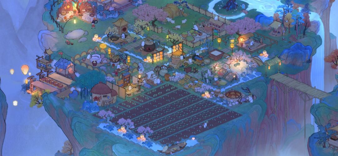 自己做了一些调整,因为自己河灯不太够,有的地方可能有点黑,宝贝们可以自己加上灯,还有一些建筑打算摆在二岛右边(但是我没开完...)牌桌部分是自己摆的,大佬的原布局里田地没有放一块,我懒就都放一块了哈哈哈(●°u°●) 」,有喜欢的话回复我就放地基图啦~