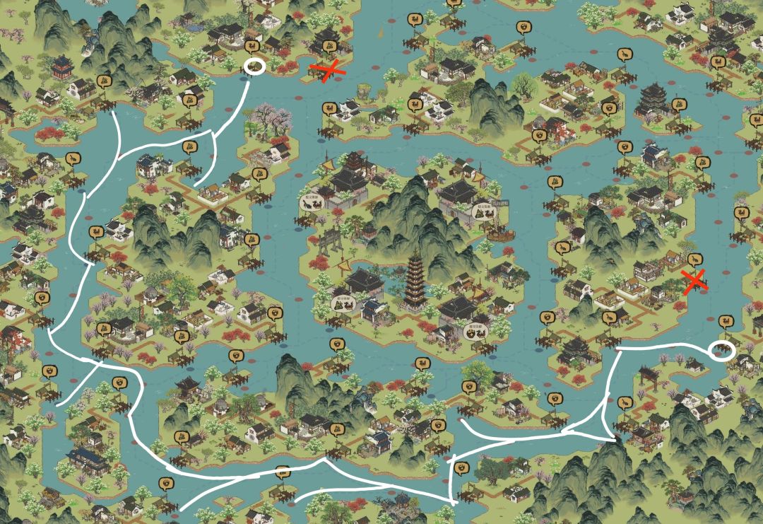 ♦漕运可以走的码头就是上图里“白线”路段了(外圈给的材料是4份,所以只走外圈)