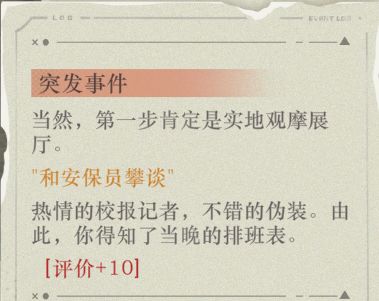 突发事件——“进入展厅”——解除目标效果“训练有素”