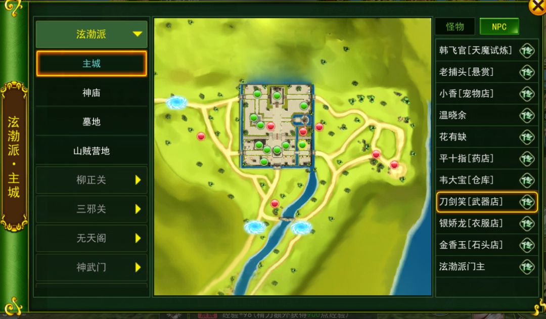 首先我们需要找到【NPC刀剑笑】位于泫勃派主城内,与其对话即可进行对话交互,并选择【装备提升】