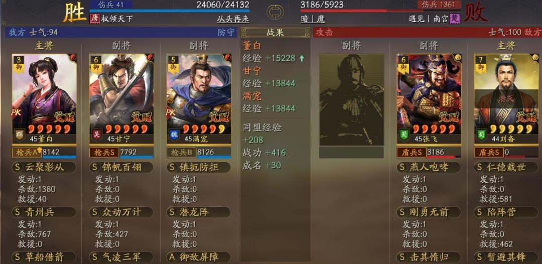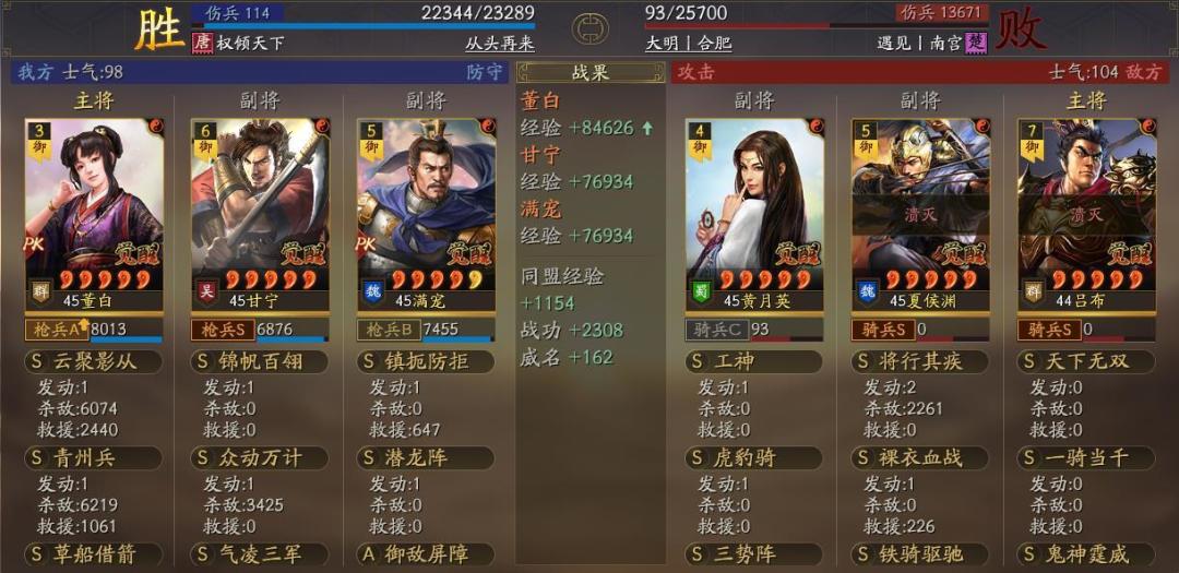 董白+甘宁+诸葛亮,萝莉枪3.0版本,又一次配齐了三将,带上老诸葛,目的就是打断敌方的一切主动战法,效果上针对性更强。