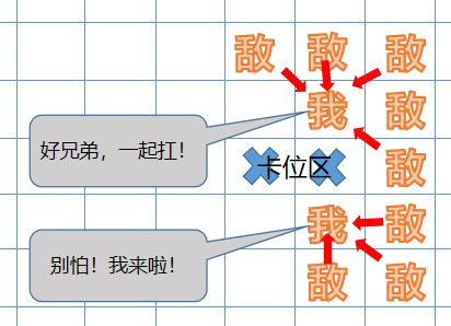 若我军如此站位,则敌军伤害可集中,大概率秒杀我军一人,如下图
