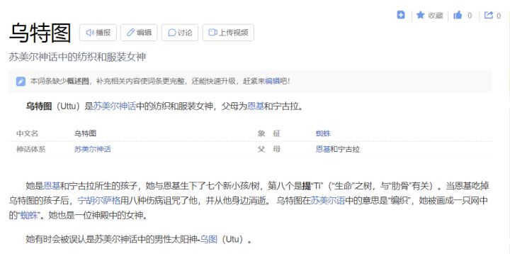 UTTU杂志,根据杂志的蜘蛛标志,基本可以确定是出自苏美尔神话的乌特图女神(图3),代表了“编织”,可以引申为UTTU杂志在编织游戏为玩家呈现的这些内容,也就是说UTTU杂志是和玩家处在同一世界的(结合第2点,和“???”很可能来自同一个地方)。