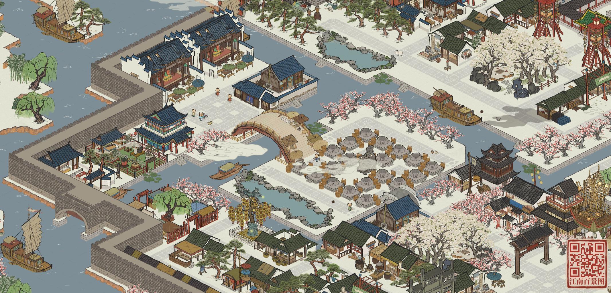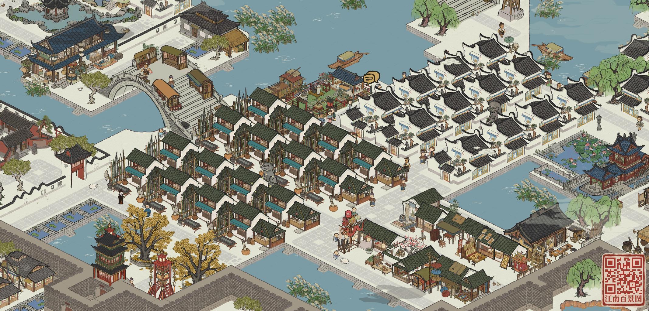 再往东走,就到了苏州有名的花街,这里可以说是南方最大的销金窟(🤣),搓个澡之后去红楼吃个饭,然后勾栏琴楼美滋滋。同时还配有医馆,提供完整的一条龙服务,医馆往西就是药铺,往北则是医药世家孙家。