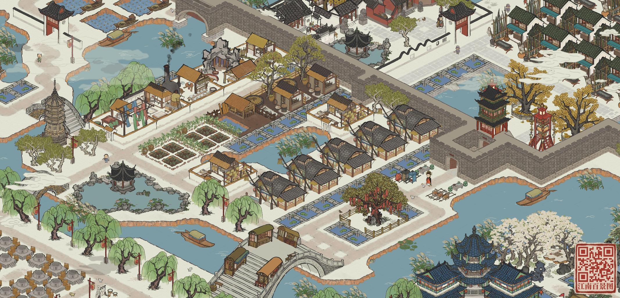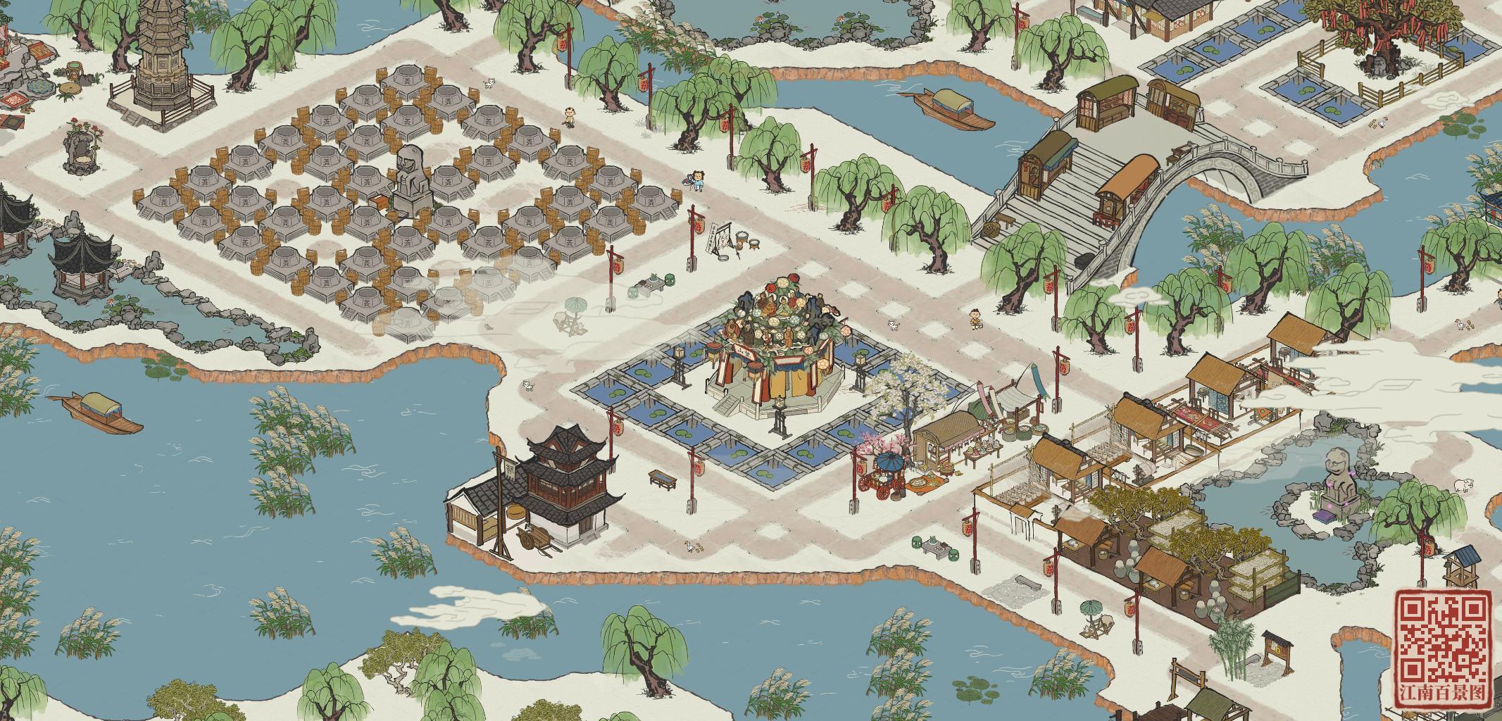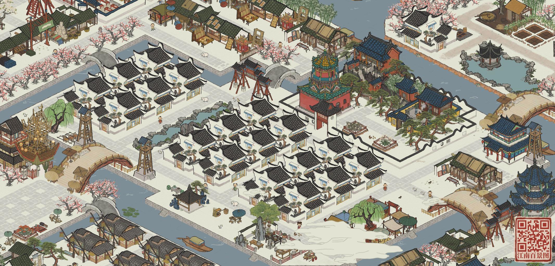 走完西城区之后就可以准备进城啦,进城前先是城外的工业区,祈福仙树保佑大家日进斗金,风调雨顺。西侧是各种工坊,苏州的工业基础比较薄弱,所以工业产品往往直接从应天运来。不过偶尔也会生产一些来应急。