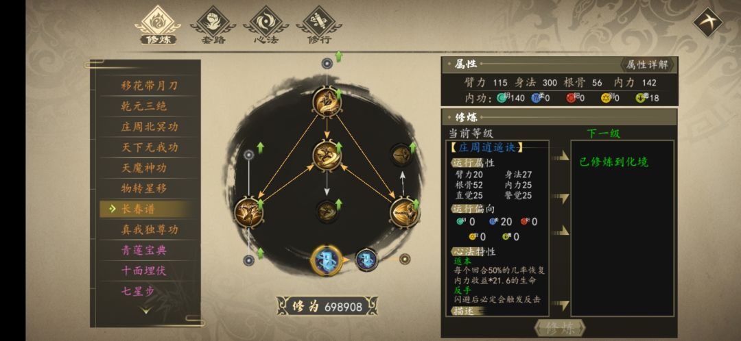 把里面的庄周逍遥诀点满后,去长春谷藏书阁学真我独尊功。