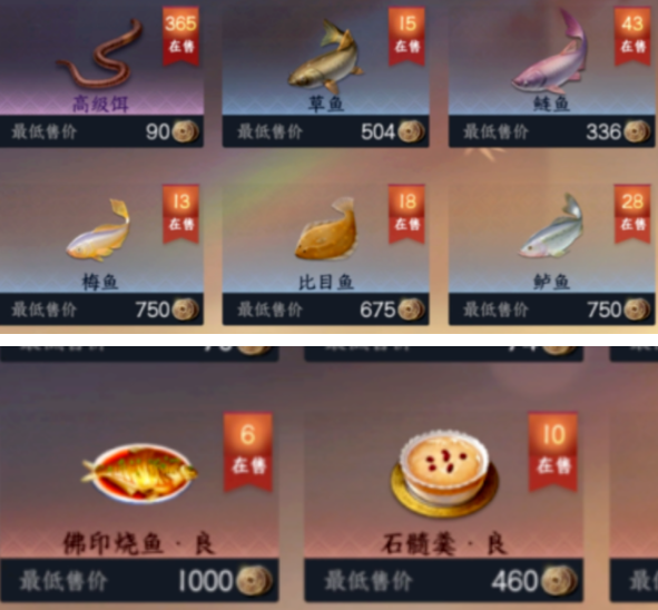 (2)钓鱼和烹调:首先钓到的鱼就可以挂到交易行上面出售卖铜钱,也可以烹饪一下做成各种菜肴再挂上去卖,来赚钱铜钱。