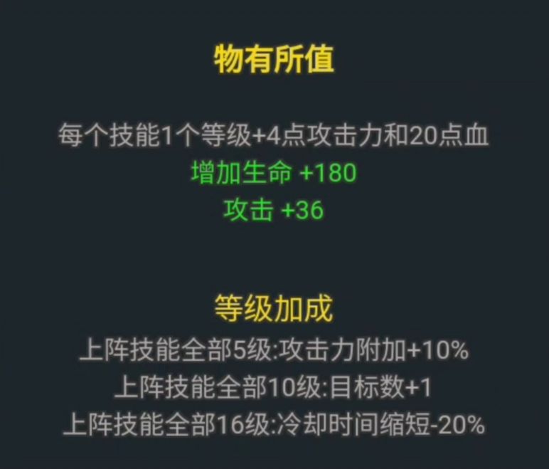 重要:技能是通用的,前期可以凑齐一套辅助技能羁绊,加经验效率,还是很舒服的。能升等级的技能尽量升上去,加成很高