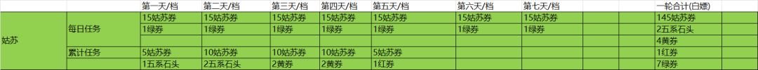 一轮姑苏不氪金的话,总计获得205姑苏券。
