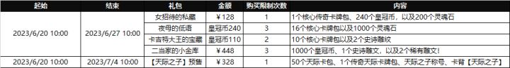 本周(6月20日-6月26日)礼包更替说明如下图