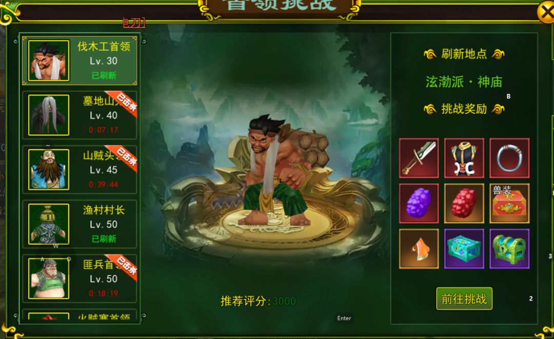 【基本规则及奖励】:首领挑战总共有八个不同的首领,每个首领所在位置不同,挑战的首领等级越高,获得的奖励越好。每个首领共有八条击杀线路,被击杀后只能等待刷新,都是固定时间刷新,刷新以后就可以再次进行挑战。不需要任何门槛即可进入,大家可以根据自己的能力选择对应的难度。挑战成功后会获得丰厚的奖励,包括武器、防具、首饰、灵宠装备箱、披风碎片、金刚石宝箱、寒玉石宝箱、热血石宝箱、强化石、属性石等大量稀有奖励。 【八大首领】:以下是首领挑战指南,需要八人才能组成队伍,小饼提示大家队伍里一定要有一个医师,只有在医师的治疗下,配合药水,才能够扛得住同等级首领的攻击,而想要挑战高等级首领的话,那就需要增加医生数量,要有配合才能更好的发挥出强者的实力。