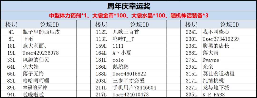 恭喜以上获奖玩家获得我们的周年庆礼包!请在