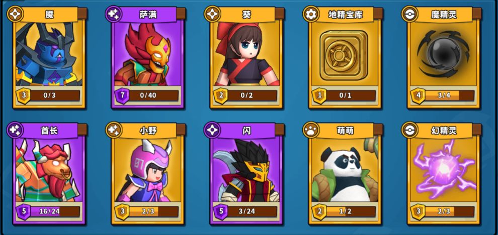 A组阵容:魇、萨满、葵、地精宝库、酋长、小野、闪、萌萌、魔精灵、幻精灵