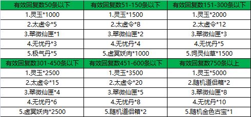 2. 回复有效数量达到相应条数获得对应的奖励。