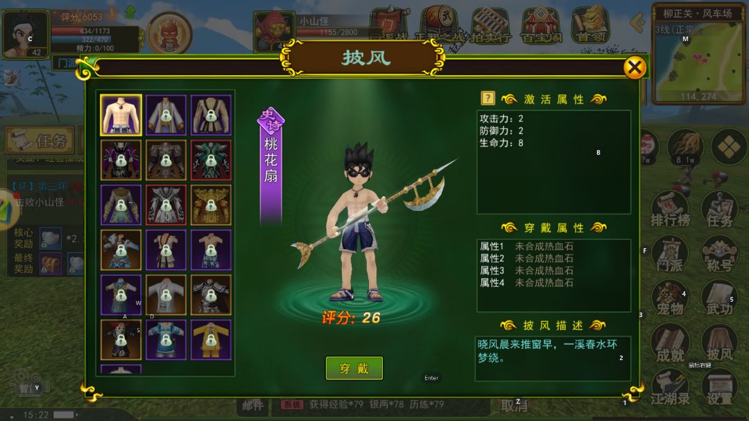 除了上一期我们说到的装备里合成和赋予所给我们带来的战力游戏中还有披风和称号也可以给我带来高额的属性加成,披风目前只有两种获取渠道,一种是非常亲民的新手签到我们只需完成第七天的新手签到就可以获得一件紫色品质的披风,披风也和我们正常装备一样可以进行合成赋予称号也是如此在我们第六天也可以获得一个金光闪闪的称号,除了这两样之外还有一个很容易被大家忽略多的装备-门甲,我们通过门派捐献可以获得门派贡献可以在门派中兑换门甲一件这一点大家可千万不要忘了。