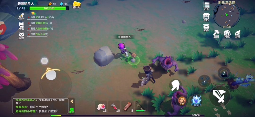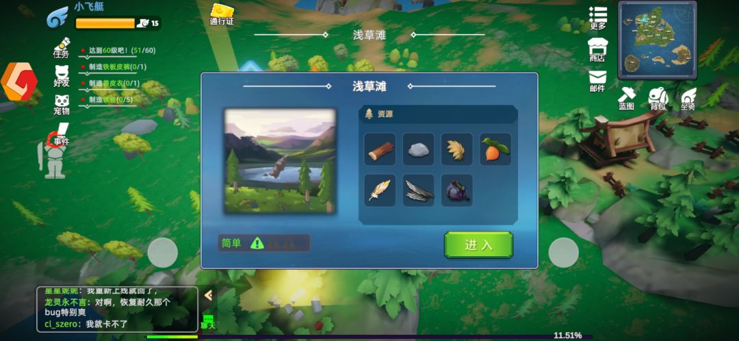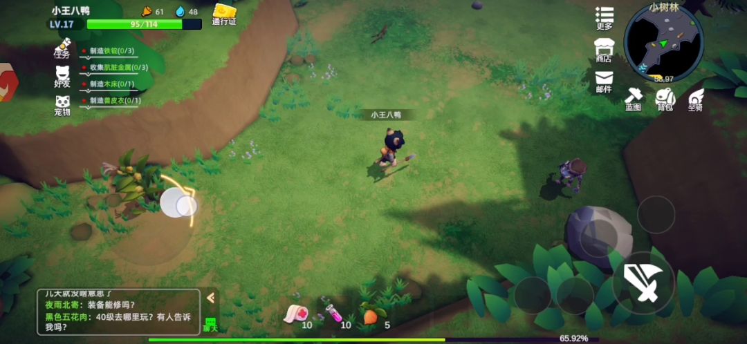 开局过完新手教程拿着系统教我们做的长矛去新手地图刷怪收集物资,15级之前从溪谷村过去,点开新手村小地图可以看到
