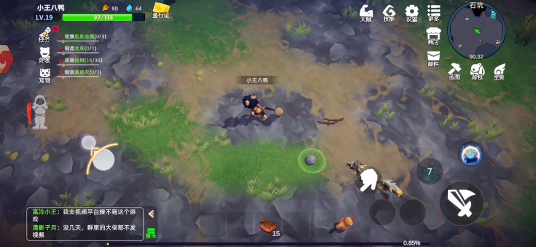 等级升到十五级学习锤子的护盾技能穿好装备就可以去石坑采集铁矿石了