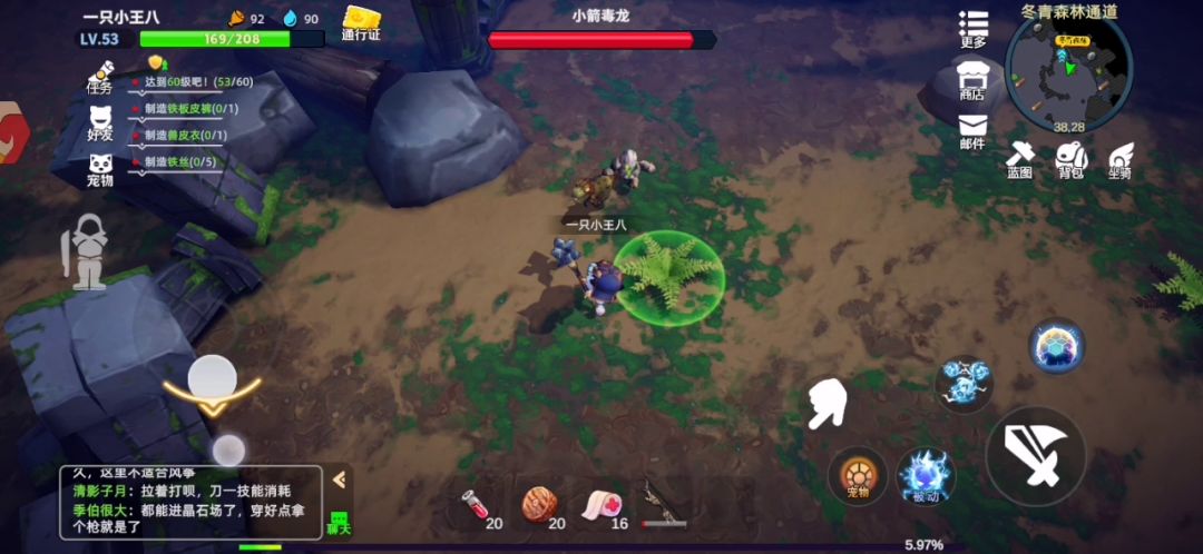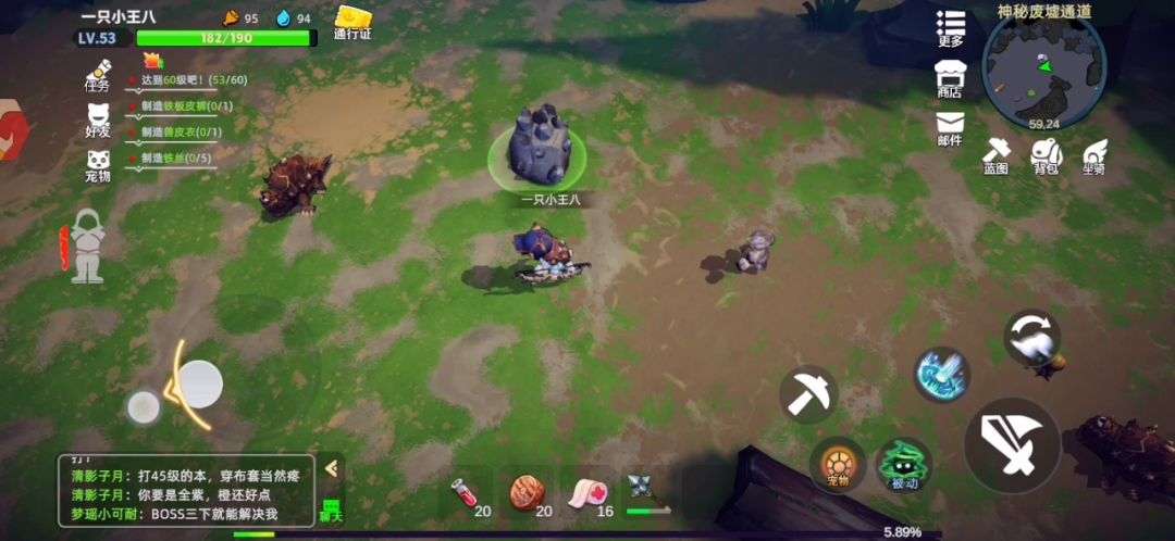 宠物的话建议带个石头头就好了,吉祥物,属于锦上添花,有钱可以弄个挡远程伤害的那个宠物,那个我没有,大家可以去论坛看别人的。