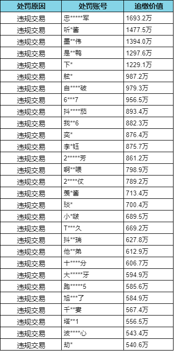 6月12日-6月18日期间,共处罚5924个作弊账号,以下为部分账号公示: