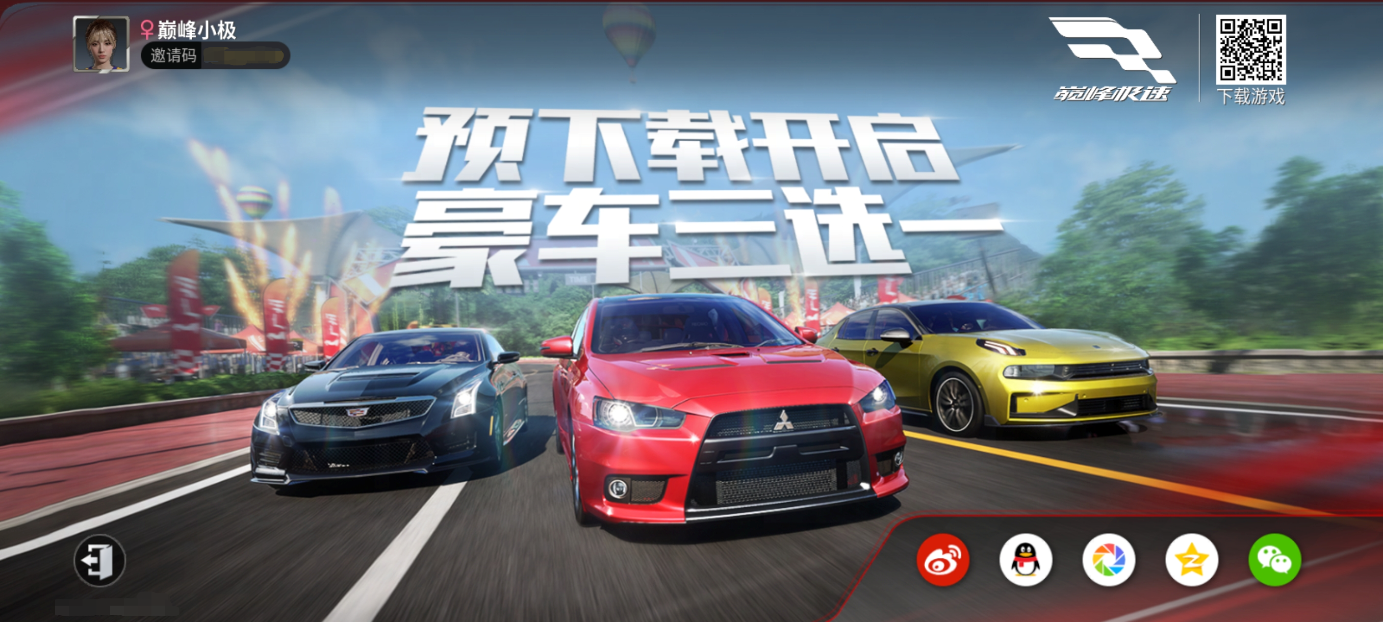 邀请好友通过小程序活动页下载注册《巅峰极速》
