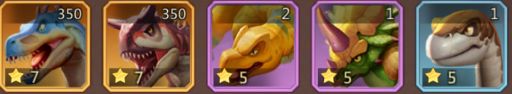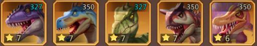 阵容选择:豪华阵容(火盗龙、迅猛龙、荒漠迅猛龙、赛查龙、副栉龙或者高星级棘龙/牛龙)