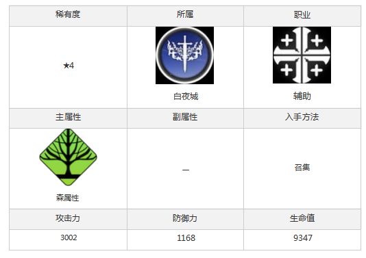 主动技、连锁技、装备技全都带有治疗效果,是个纯粹的治疗角色。治疗量非常高,尤其在森属性尖塔中是必养角色之一。