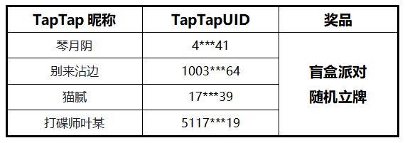 恭喜以下4位欧尼酱获得盲盒派对随机立牌一份~